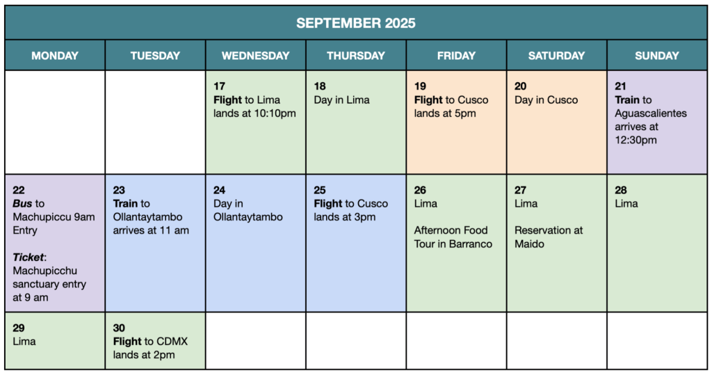 The 2 days I spent in Aguascalientes were perfect. I took the time to enjoy the process and focused on my purpose there – to hike up to the peak of Waynapicchu and see the ancient Incan city in its entirety.